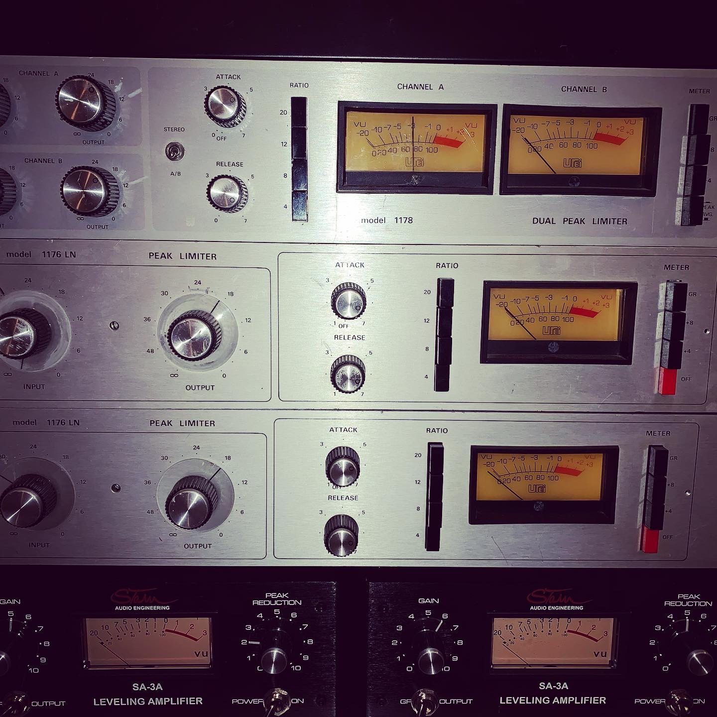 The studio is equipped with two live rooms and a control room built around a vintage CADAC A series desk 24-10-10-2 filled with Lundahl and Marinair (the same transformers used by Neve). It boasts a wide range of old Neumann tube and solid-state microphones, RCA's, AEA, Beyer (old and new), ALTEC 1519 compressor/preamps, Chandler TG1, Phoenix compressor, Neve 33609, 1176 UREI, 1178 UREI, LA2-A, LA3, LA4, Rhodes Suitcase, Wurlitzer, Moog, and much more.